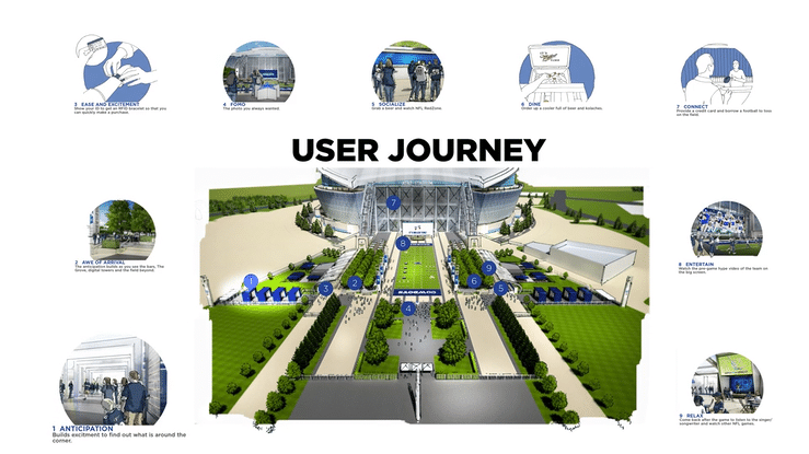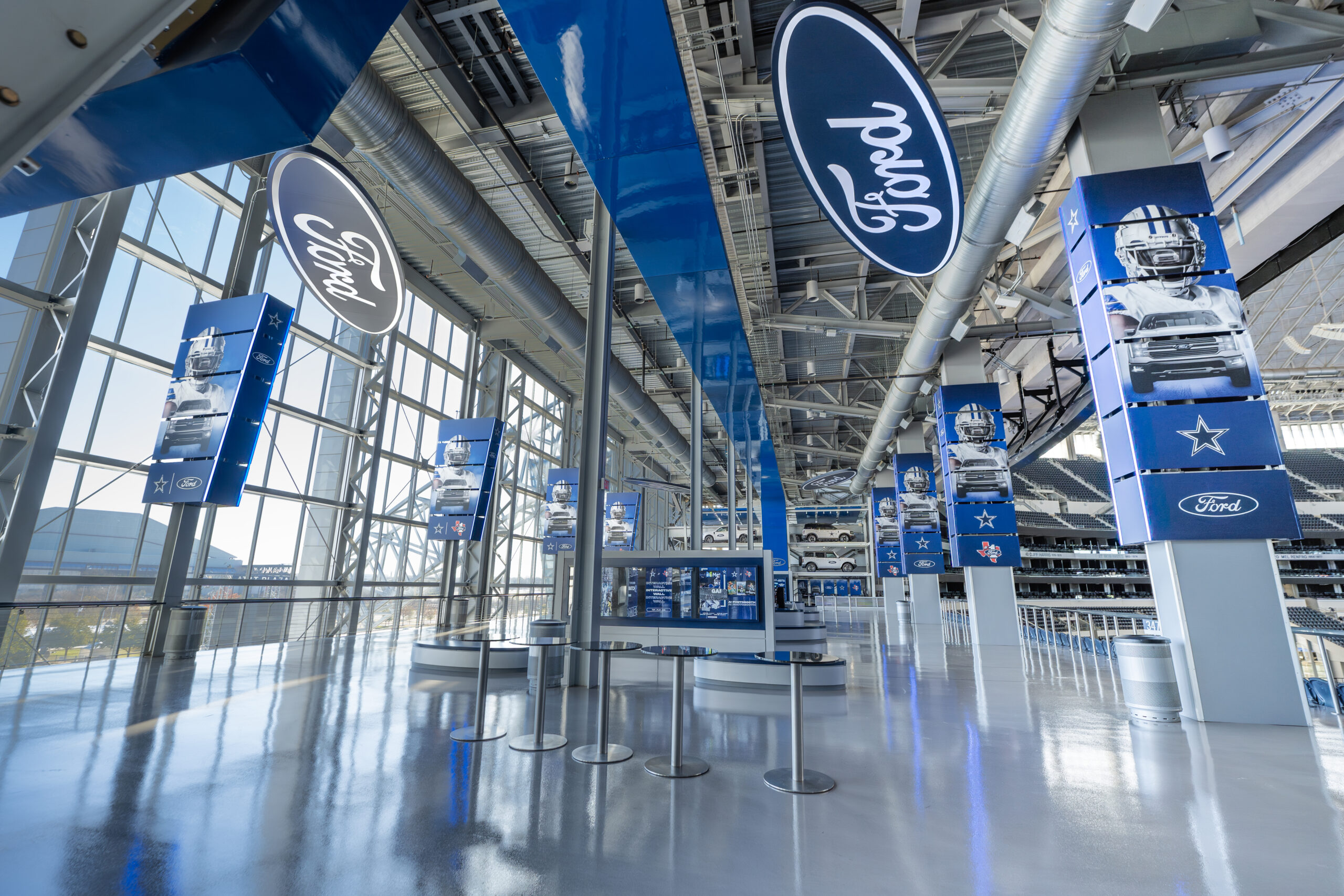 Advent transformed the Ford Deck, a standing-room-only platform at AT&T Stadium, into a bold branded destination for fans. Working with Ford and the Dallas Cowboys, we infused the space with kinetic lighting, custom seating, live game streams, and elevated amenities—creating an experience that amplifies both the Ford and Cowboys brands.